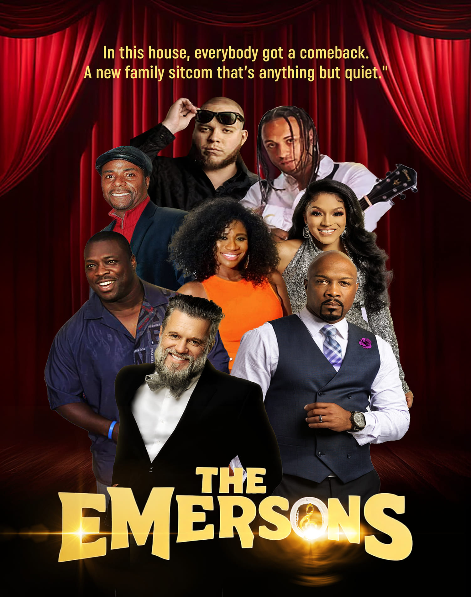Get ready for a laugh-out-loud ride with The Emersons, the sitcom that turns everyday life into a comedy extravaganza! Meet James Emerson, a culinary maestro with a flair for fine dining and an even bigger love for music. When he’s not stirring up flavor in the kitchen, he’s cooking up laughs and harmonies at home with his musically gifted family. A former member of a nationally successful recording group, James put his dreams on hold after the loss of his younger brother. Now, he’s a devoted husband and father—navigating life with his wife Kelly and their three kids: James Jr. (20), Monique (19), and 16-year-old Riley. With the kids growing up fast, James is quietly planning his music comeback… once the house quiets down (just a little).